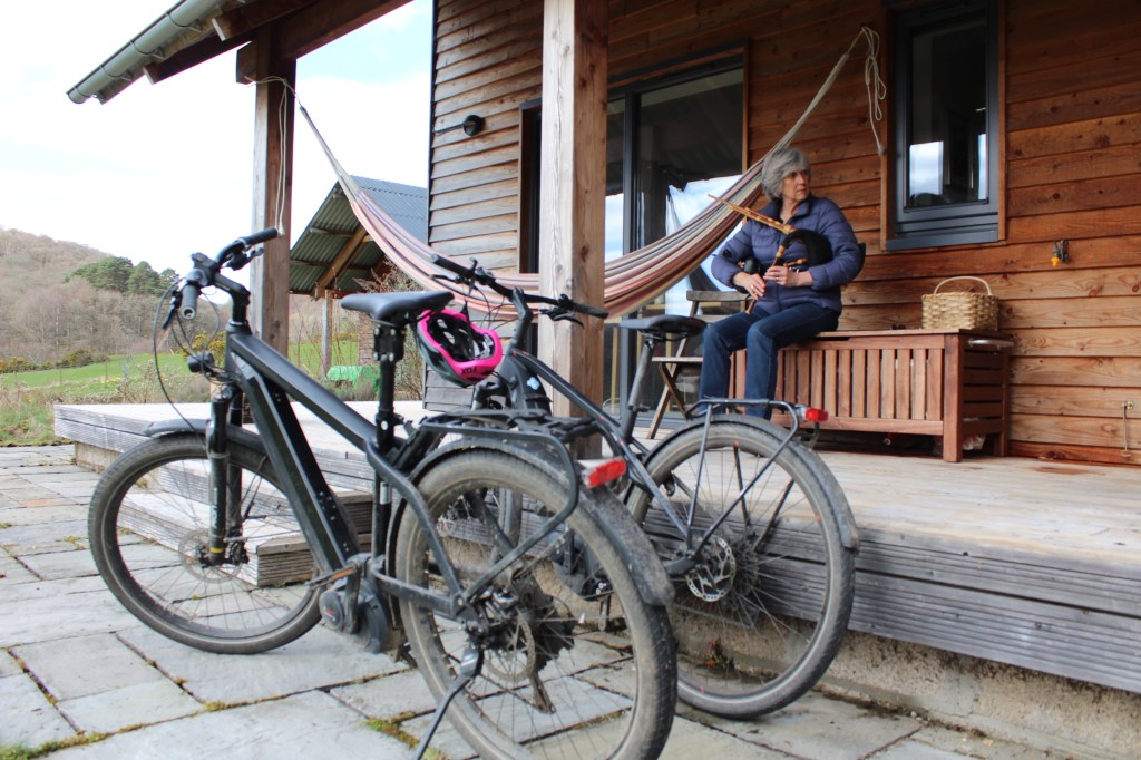 Sma’ pipes player Chris Grace and husband Alan Caldwell bought their e-bikes two years ago with an interest-free loan from the Energy Saving Trust. Chris describes her e-bike experience as “life-changing”.