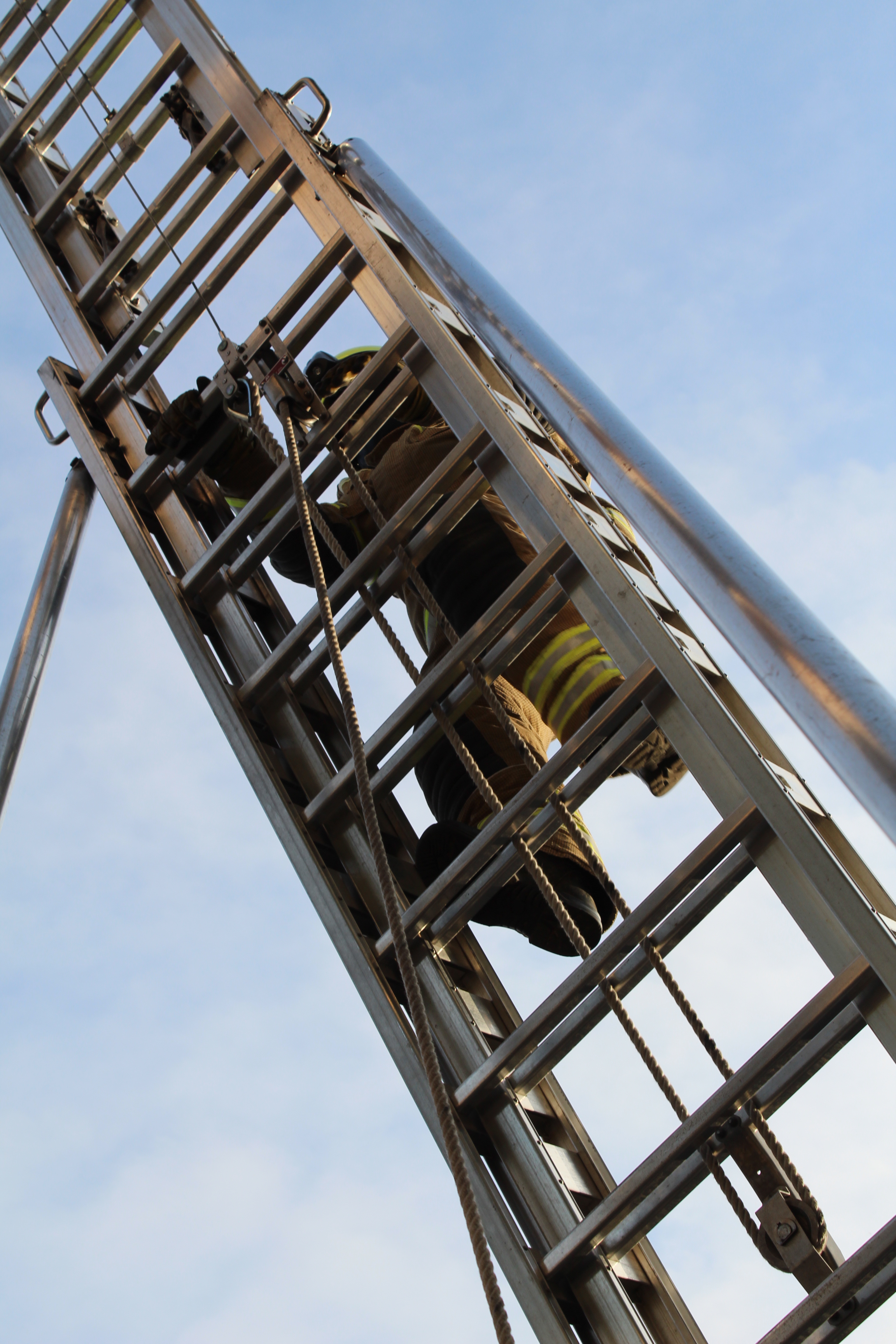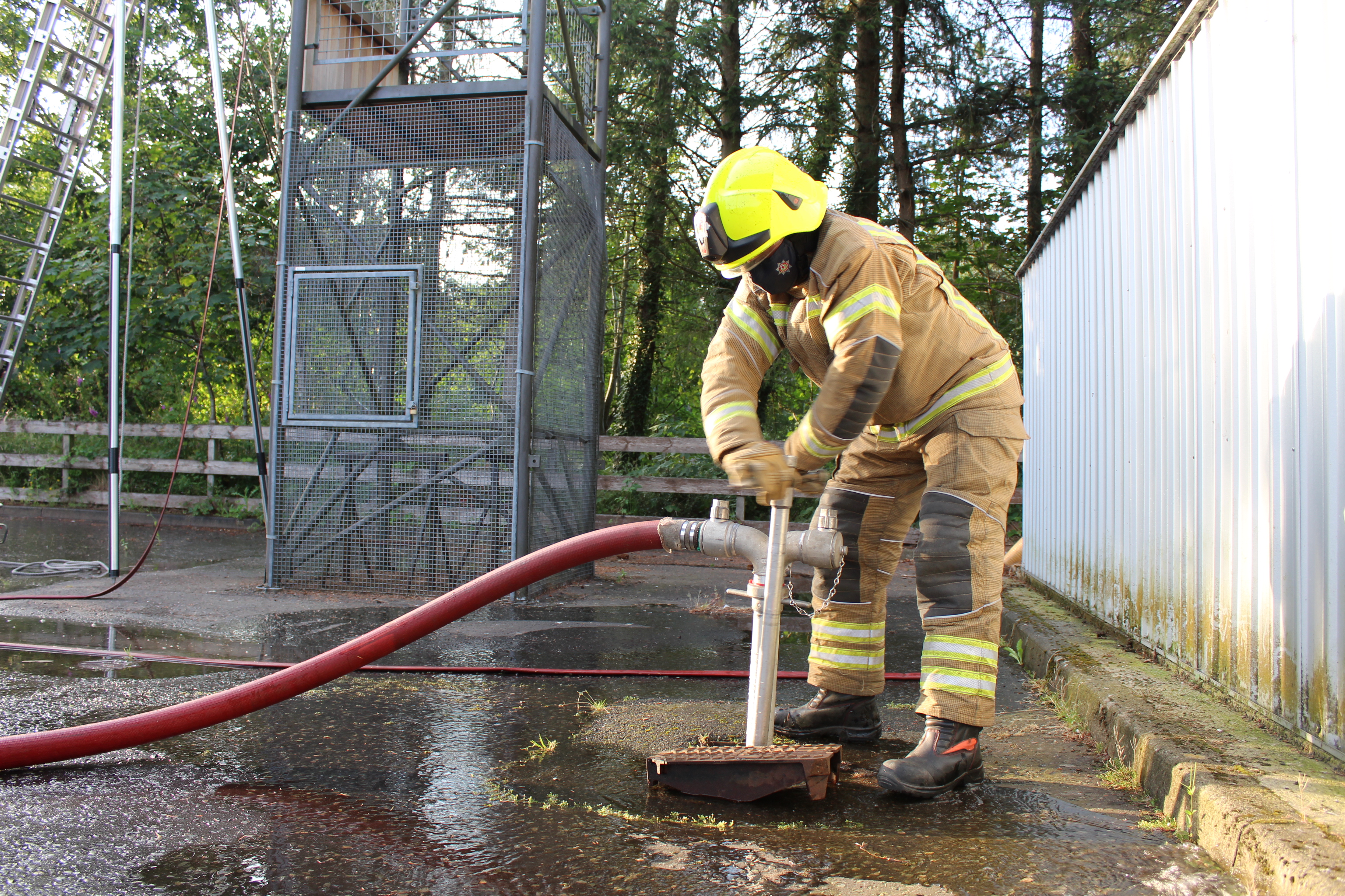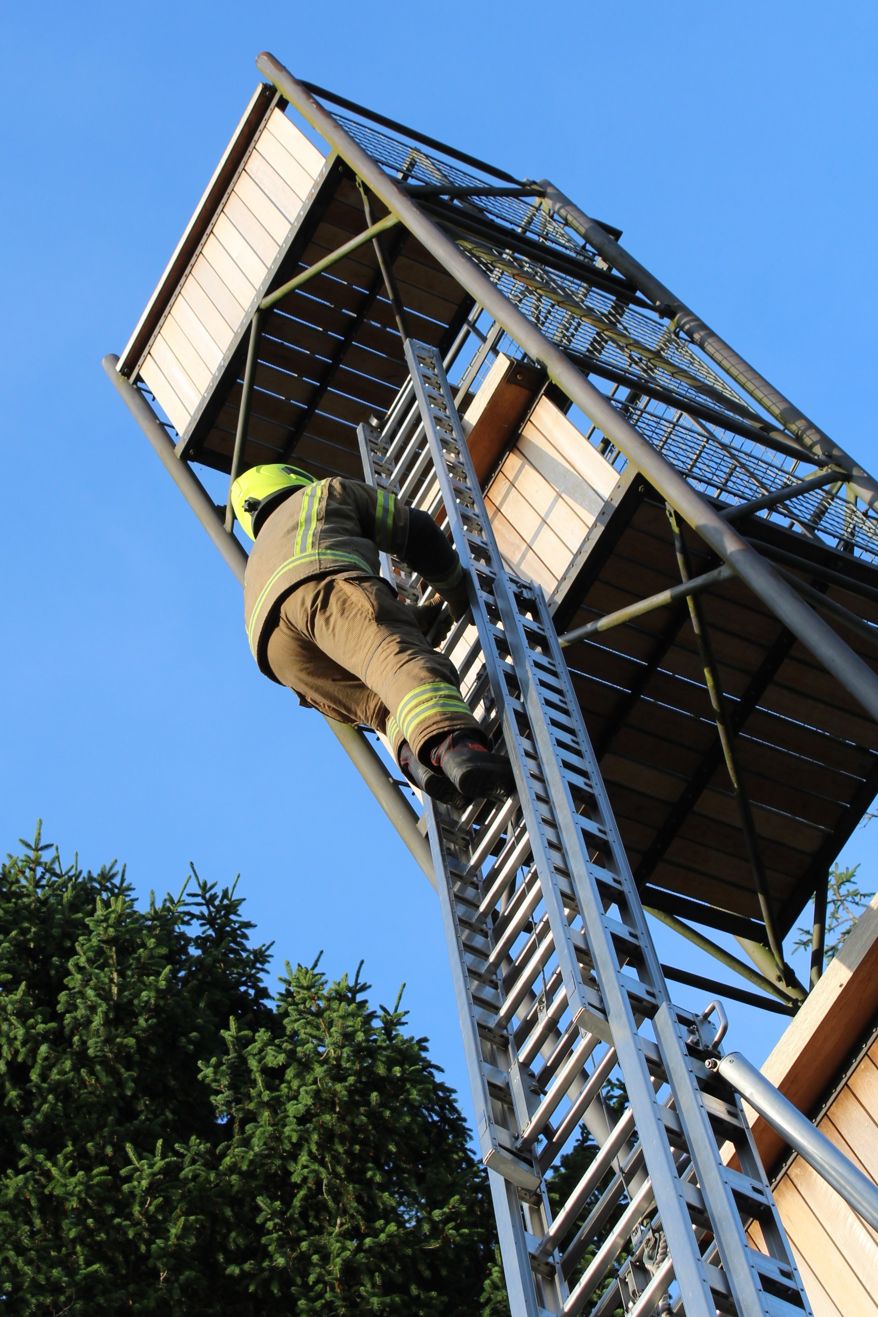 The Comrie station is crewed by a roster of 13 firefighters, one of whom is a woman. Retained firefighters can come from all sorts of professional backgrounds, but a large proportion of the crew at Comrie work in the building trades. When SiM visited the station, the firefighters were carrying out ladder and hose drills as part of their regular weekly training routine.